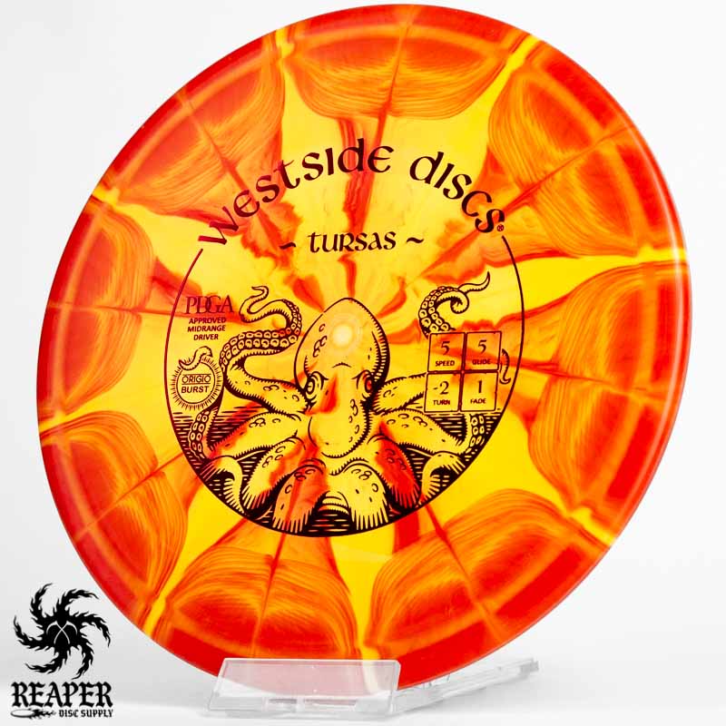 The Westside Discs Tursas in Origio Burst is an understable midrange made with super grippy plastic.