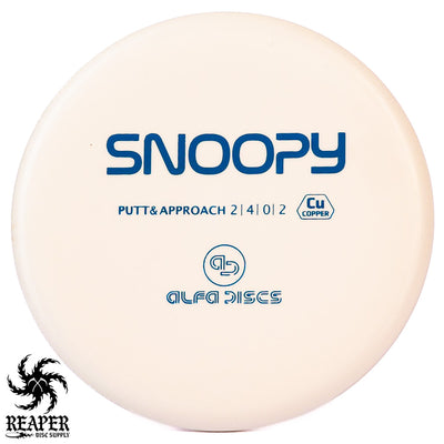 The Alfa Discs Copper Snoopy is a stable disc golf putter made with grippy plastic and a reliable flight path. The Snoopy has a ton of glide and a late-fading finish, which makes it ideal for any putts in circle one or circle two. If you need an excellent, versatile putter that is incredibly comfortable in the hand then give the Alfa Discs Snoopy a throw and you might just get hooked (like I did).