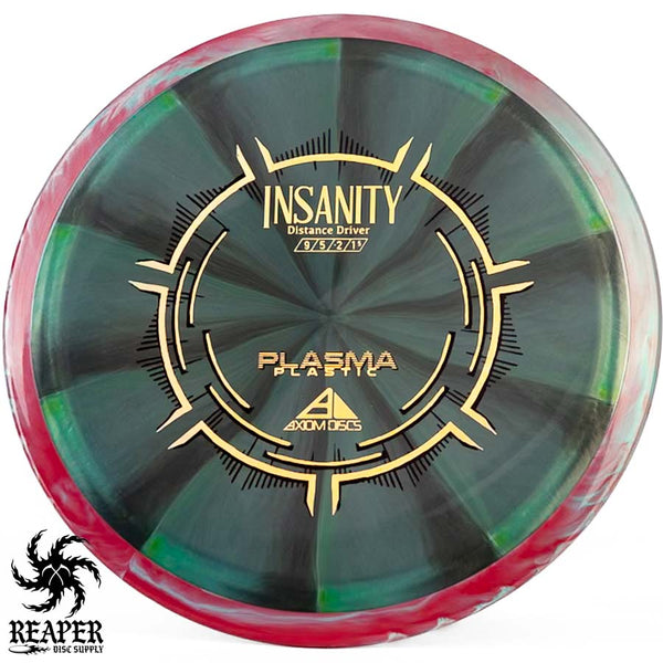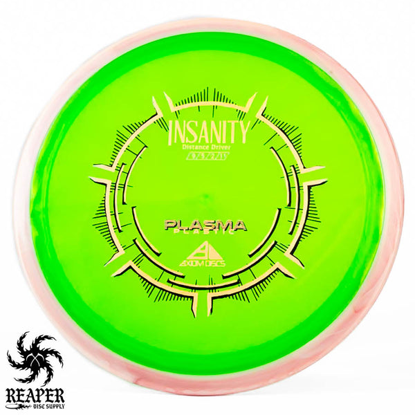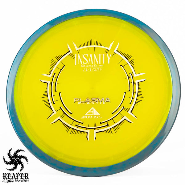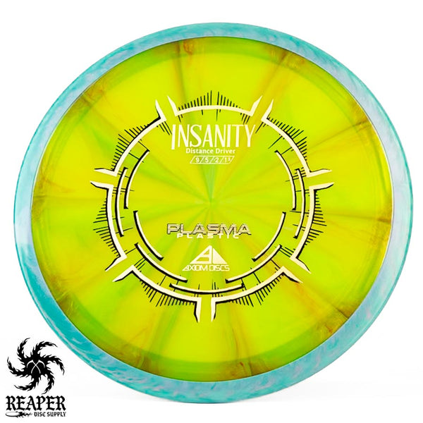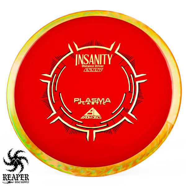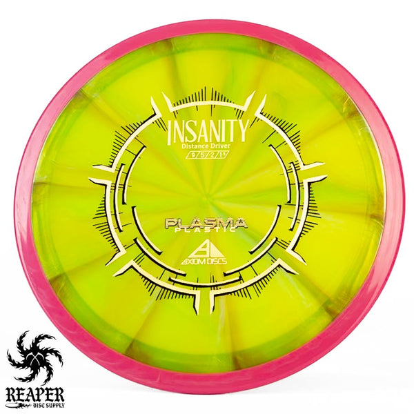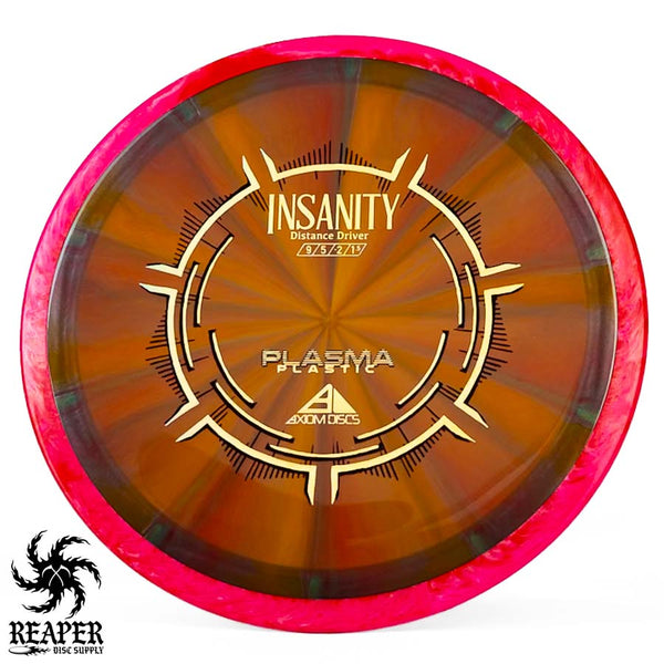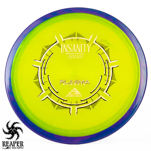 The Axiom Insanity Plasma is also available in durable Proton plastic. Find your next favorite disc here at Reaper!