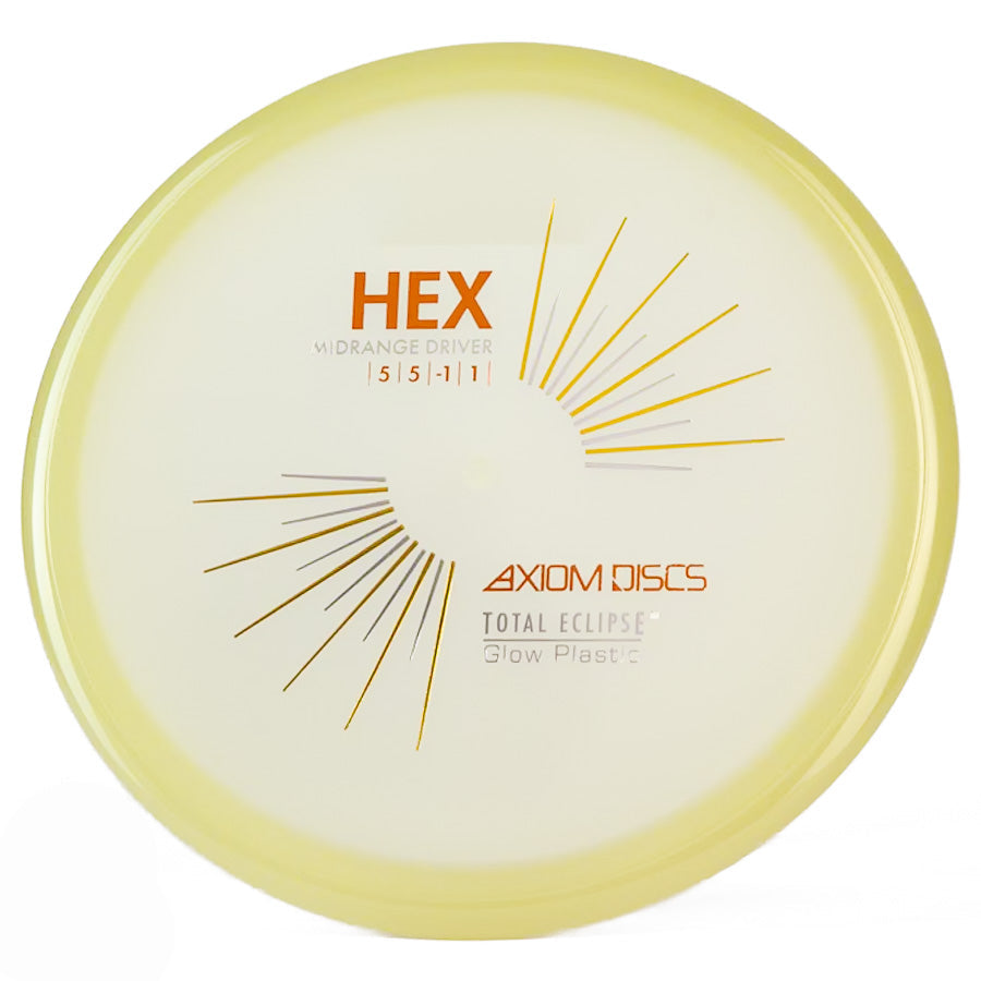The Axiom Total Eclipse Hex takes the already buttery smooth flight characteristics of the standard Hex and adds supernatural glow performance with its innovative dual-glow construction, perfect for those twilight rounds when you need precise midrange control. You're going to love how this disc maintains that perfect neutral stability whether you're throwing touch shots through tight gaps or working those finesse approaches, with just enough high-speed turn to hold whatever line you put it on without worrying about an aggressive fade. The Total Eclipse plastic's enhanced GYRO effect gives you confidence for those power grip releases when you need to park your upshots, while the dual-glow technology ensures maximum visibility during those spooky glow rounds where accuracy is everything.