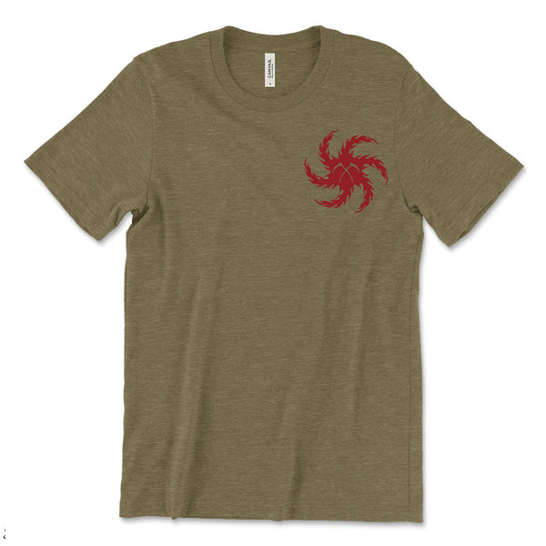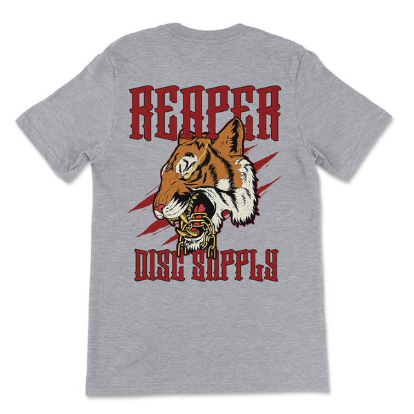 Slash your way into our new 'Chained Tiger' t-shirt and you may find yourself fending people off at your next doubles tournament. Our in house design hand drew this design which is available in heather olive, athletic heather, and black.
