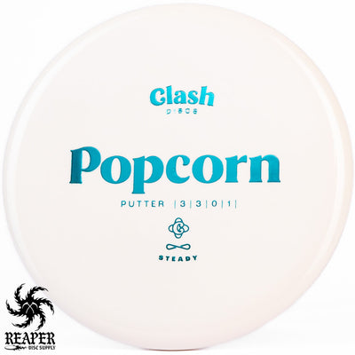 The Popcorn is Clash Discs' stable throwing/approach putter, although you can also use it as a putting putter as well. Clash's Steady plastic feels kind of similar to Kastaplast K1 plastic, which makes this putter a strong candidate for forehand and backhand drives or upshots. Steady plastic is incredibly strong and durable so you won't have to worry about replacing your Popcorn anytime soon (unless you throw in the only water hazard on the course like I did.)