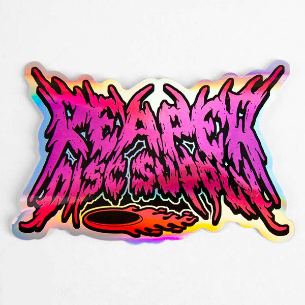 If there's one thing the disc golf community has in common, it is definitely not death metal. But we don't care and made these holographic stickers anyways.
