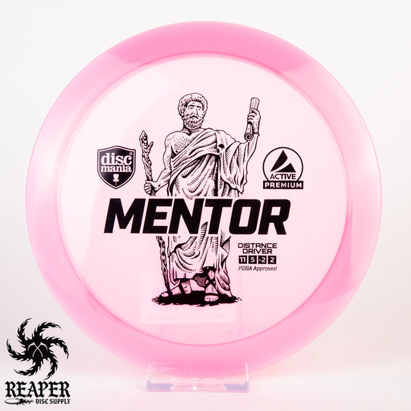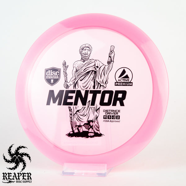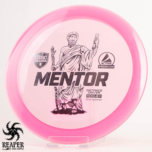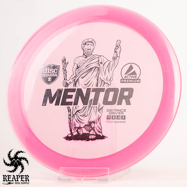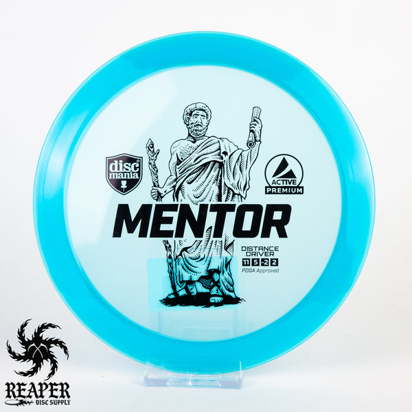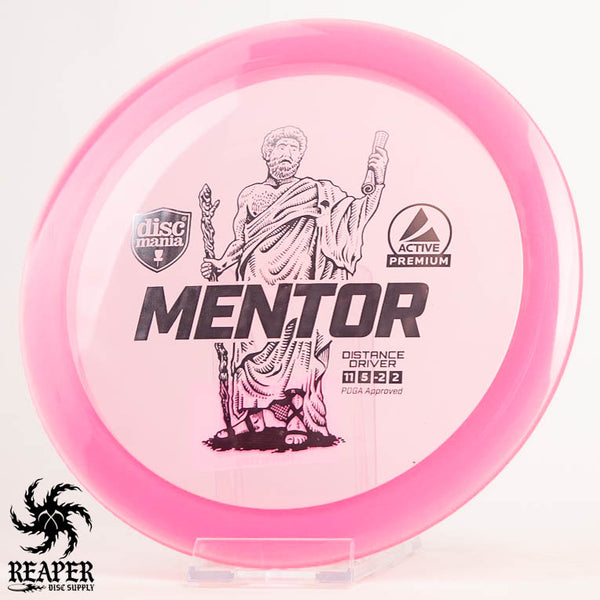 The Discmania Active Premium Mentor is a stable to slightly understable distance driver that is similar to an Innova Archon. Great for power forehands and backhands the Mentor is a great driver for anyone looking to upgrade from a fairway driver. Once the Mentor is beat in (which takes awhile with this Active Premium plastic), advanced players will be able to hyzerflip this disc with enough arm speed. If you are looking for a straight flying driver with plenty of glide give the Mentor a try!