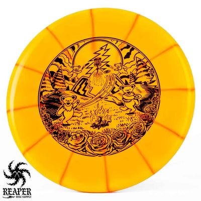 Experience the limited edition Discmania Grateful Dead Lux Vapor Link, a collaboration that combines outstanding grip and durability. Crafted with Lux plastic, this versatile throwing putter embodies the iconic Grateful Dead vibes. Elevate your disc golf game with the Grateful Dead Lux Vapor Link today.
