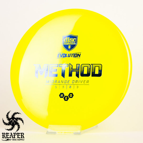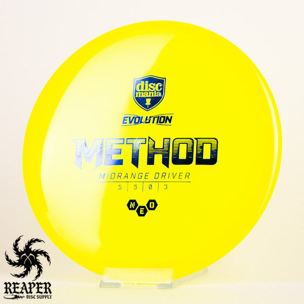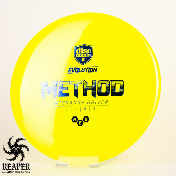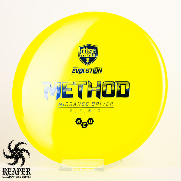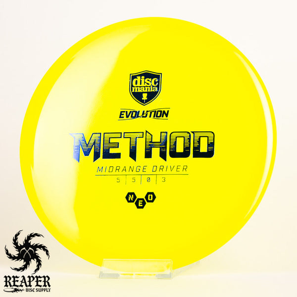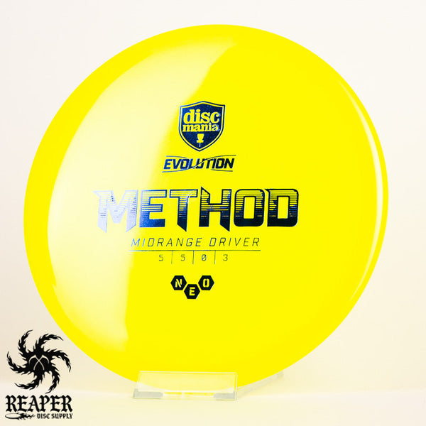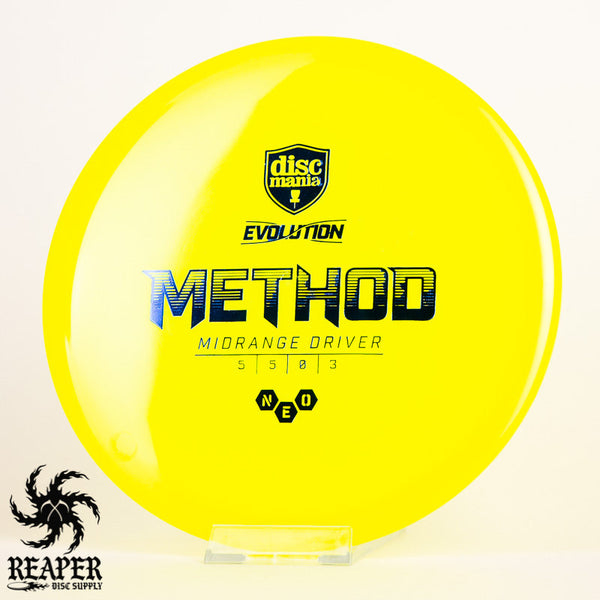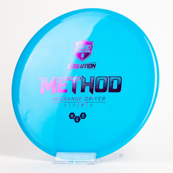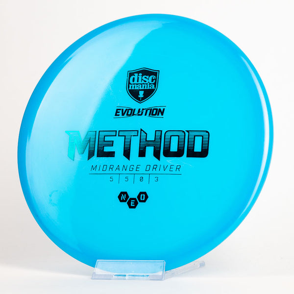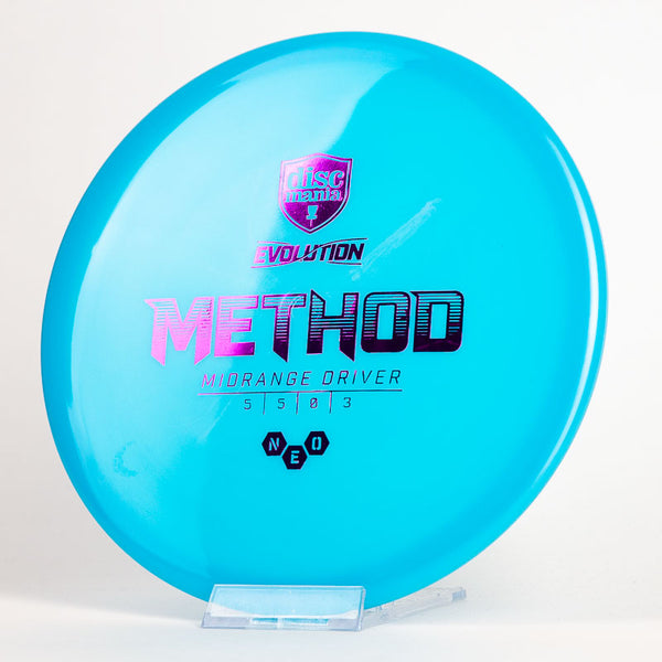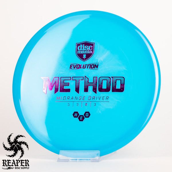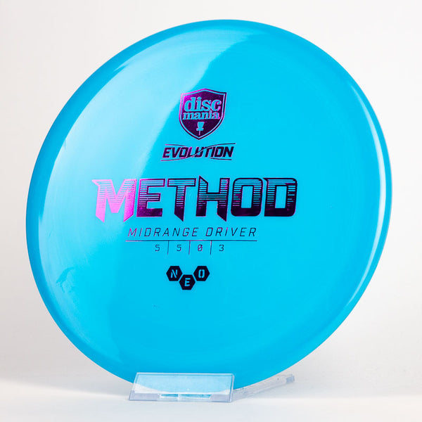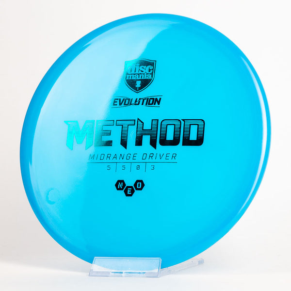 The Neo Method is an overstable midrange disc that can be compared to Discraft's Z Buzzz OS or the Innova Halo Lion. This disc will give you a straight, glidey flight before fading hard at the end every time. It is my go-to midrange when it's windy or I need a disc to predictably fade.