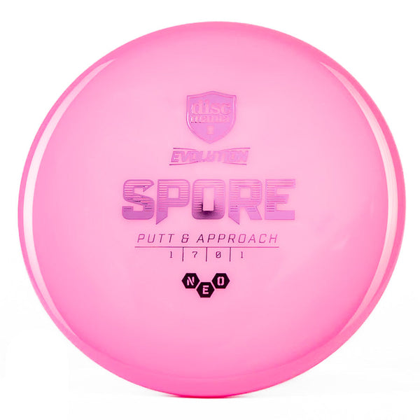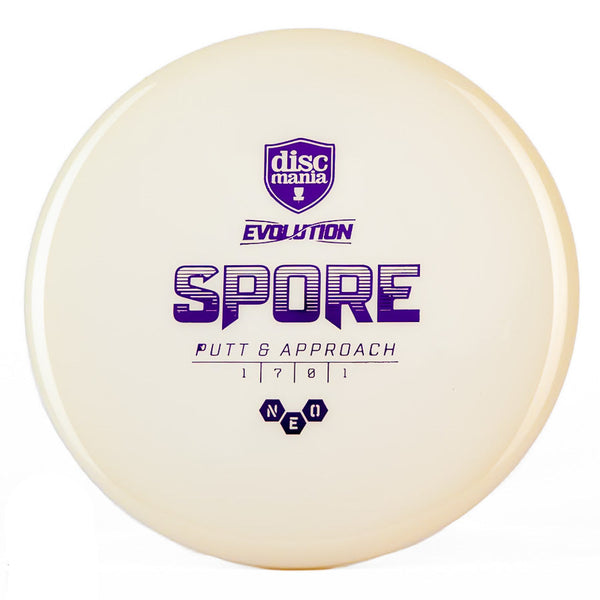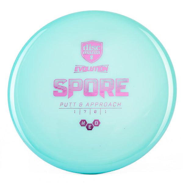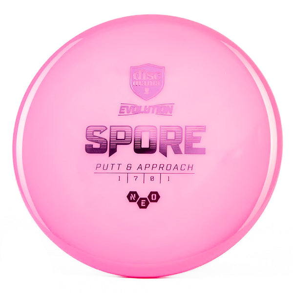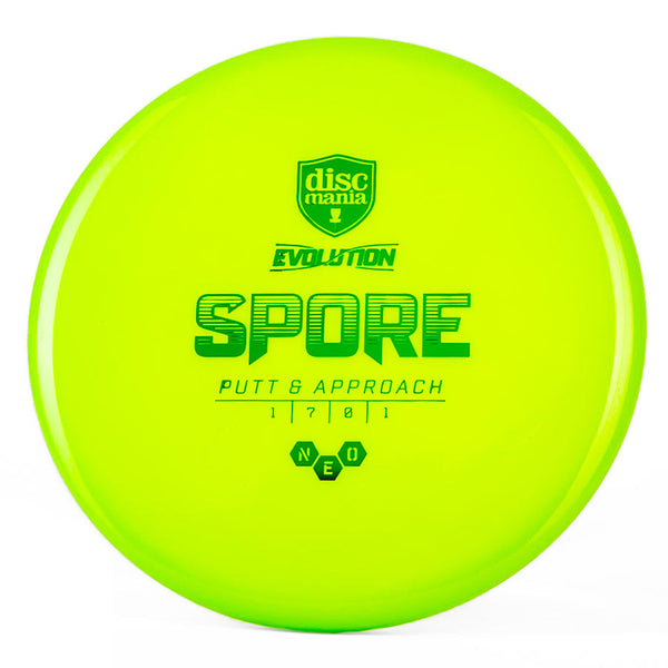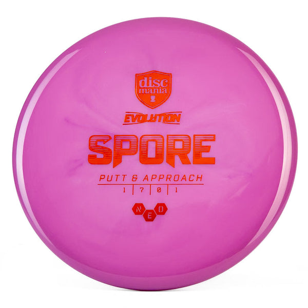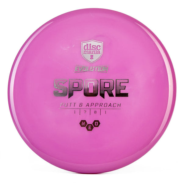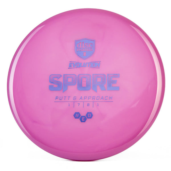 Discover the playful precision of the Discmania Neo Spore, a versatile putt and approach disc from the Evolution line. Its Soft Neo plastic offers a superior grip for controlled technical upshots and a soft catch for casual play. Stable flying with a touch of whimsy, the Spore delivers straight, predictable flights with its gentle speed and fade, perfect for players of every skill level.