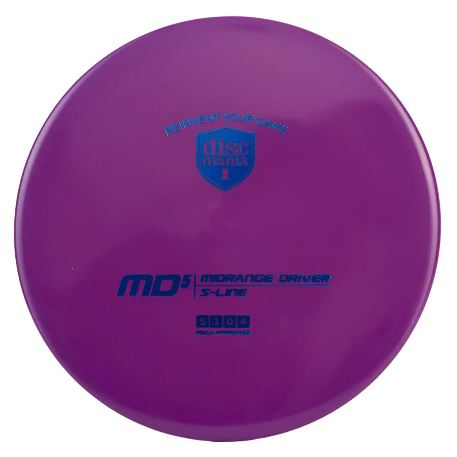 The Discmania S-Line MD5 is a very overstable midrange with minimal glide. Made with Discmania's new S-Line plastic, this small diameter disc feels incredible in the hand (especially for forehand throwers). Great for long distance approach shots and extremely reliable in the wind. An excellent mid range disc for intermediate and advanced players.