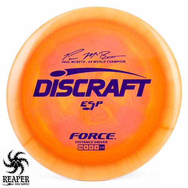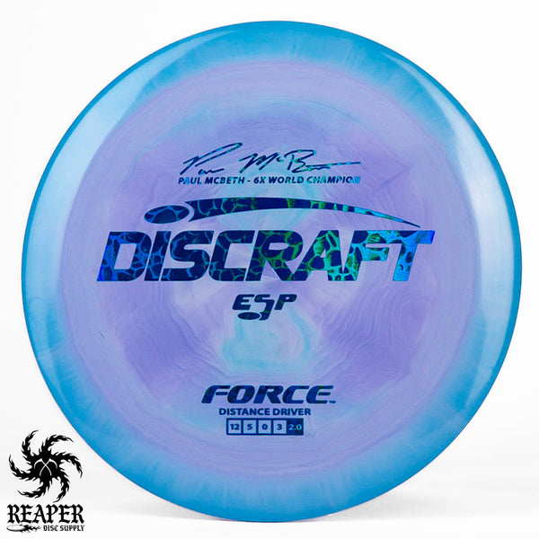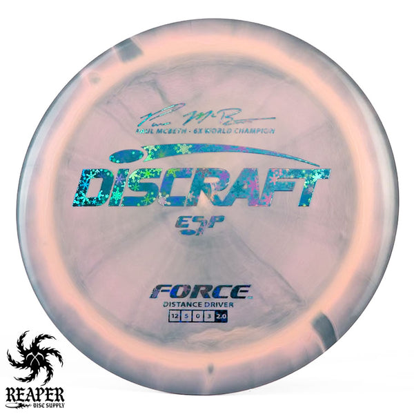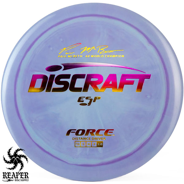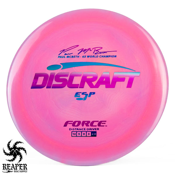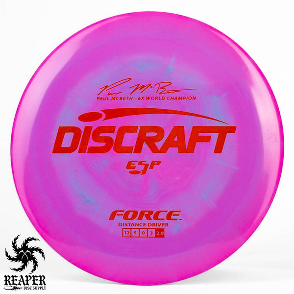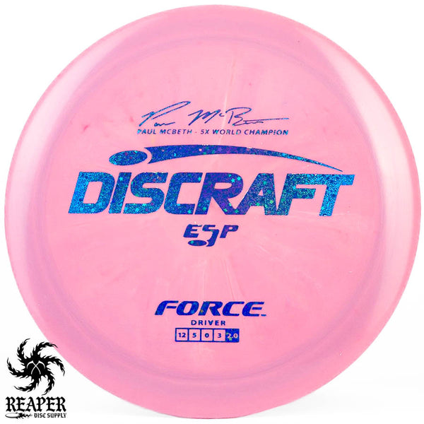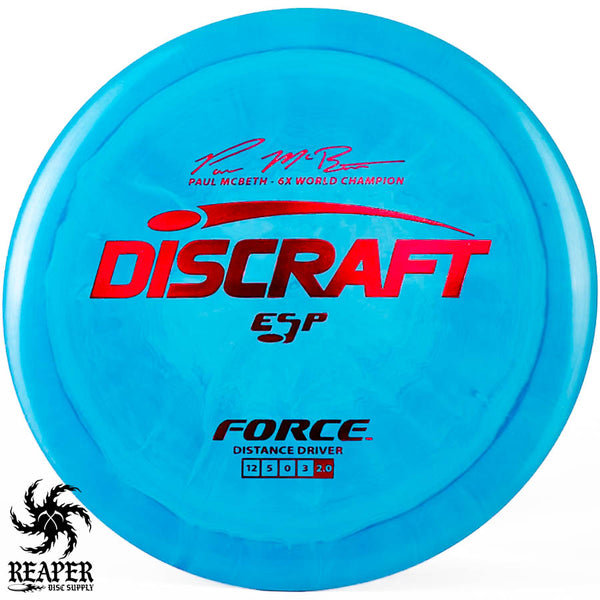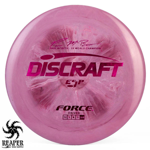 The Force ESP is an exceedingly overstable high-speed disc golf distance driver that is recommended for intermediate and advanced players. Beginners will find this disc difficult to throw due to the arm speed required to get an accurate flight. Ideal for gusty conditions and any distance drives that require a hard hyzer line.