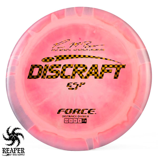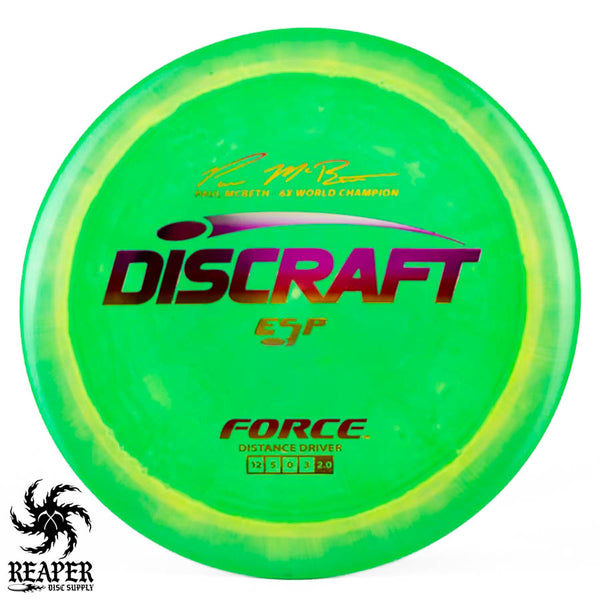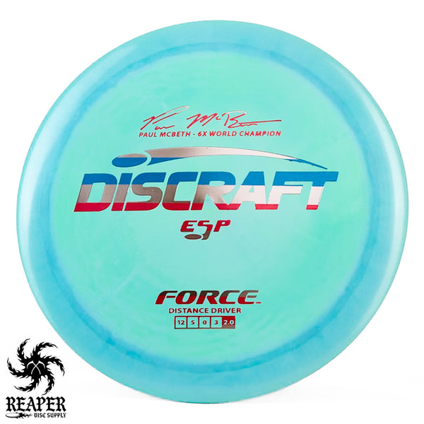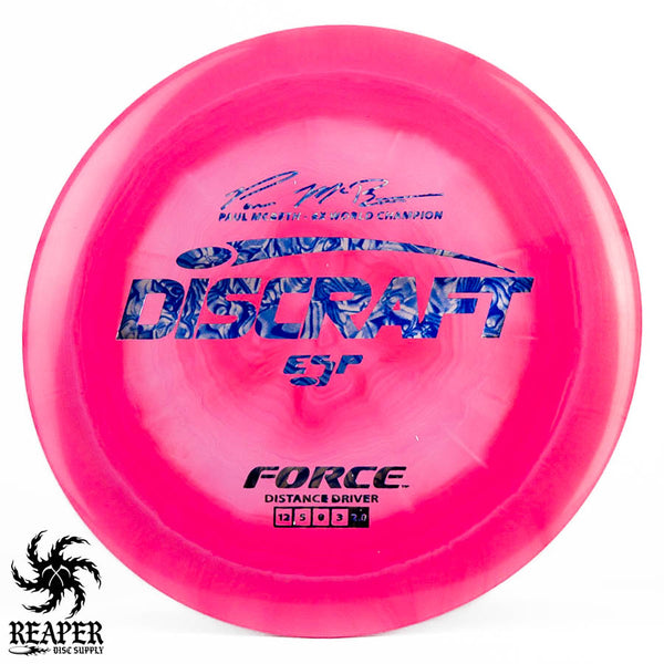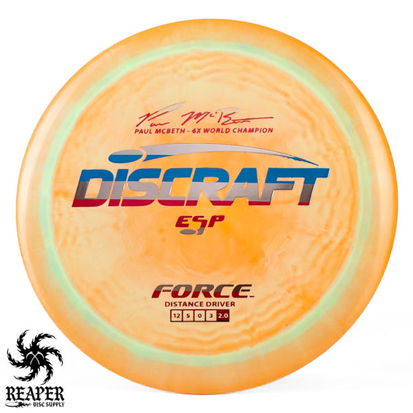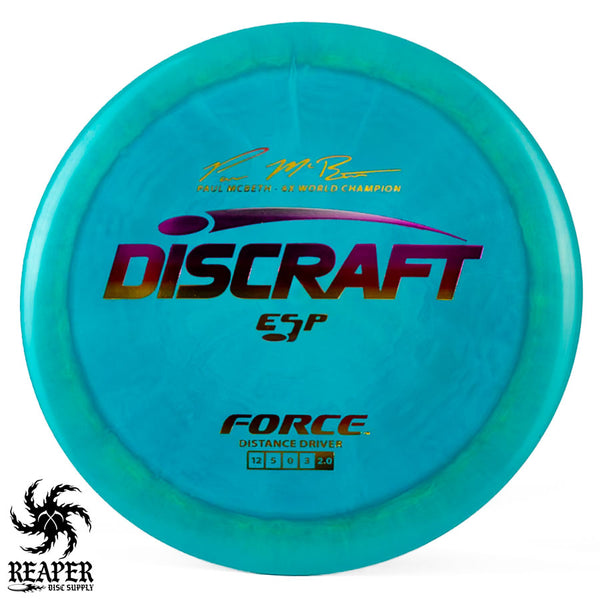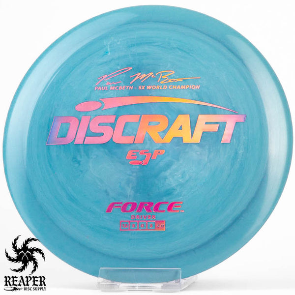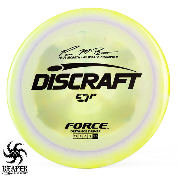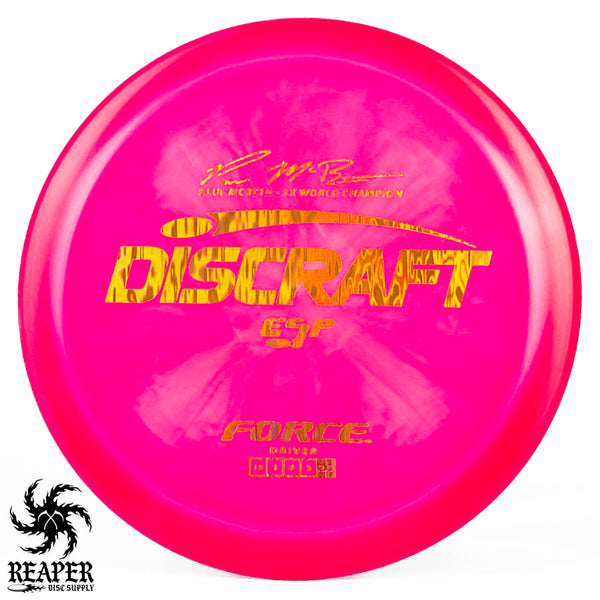The Force ESP is an exceedingly overstable high-speed disc golf distance driver that is recommended for intermediate and advanced players. Beginners will find this disc difficult to throw due to the arm speed required to get an accurate flight. Ideal for gusty conditions and any distance drives that require a hard hyzer line.