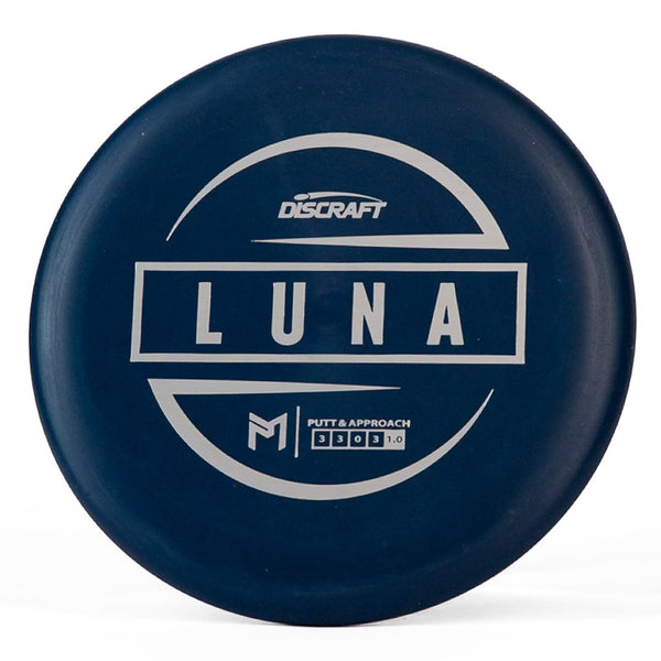 The Discraft Rubber Blend Luna is an excellent stable putter and is a staple in Paul McBeth's bag. The Rubber Blend plastic on these Lunas offers exceptional grip - both for your hands and the chains.