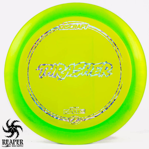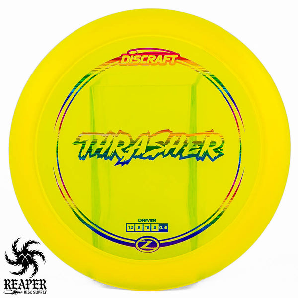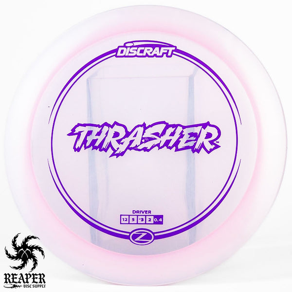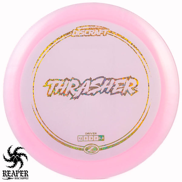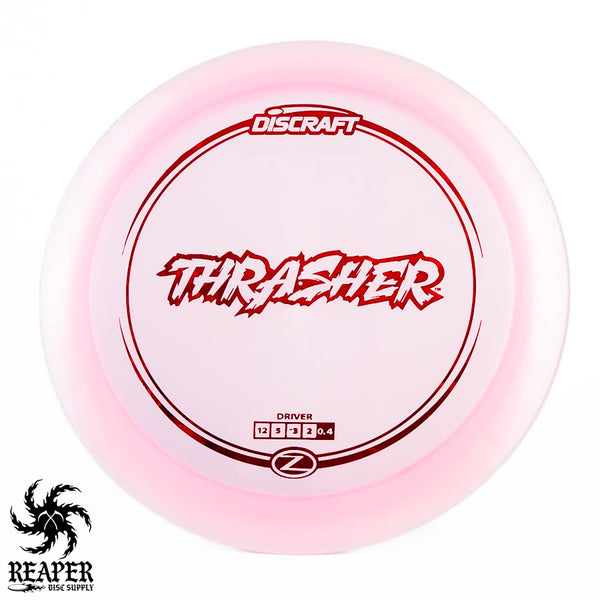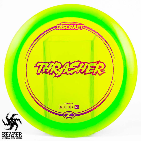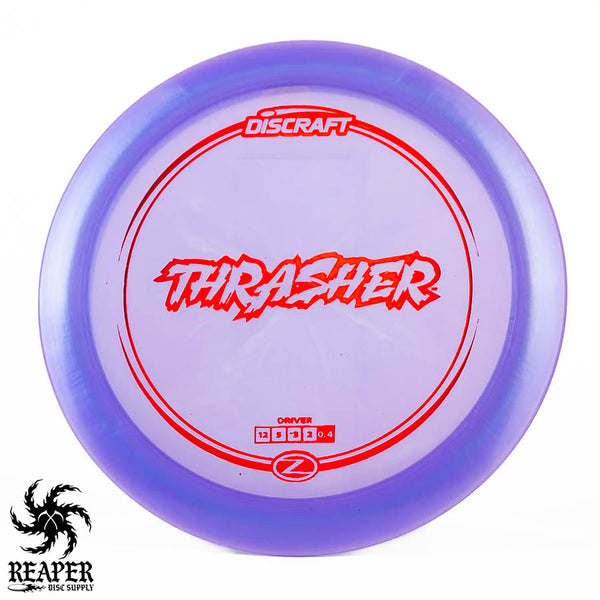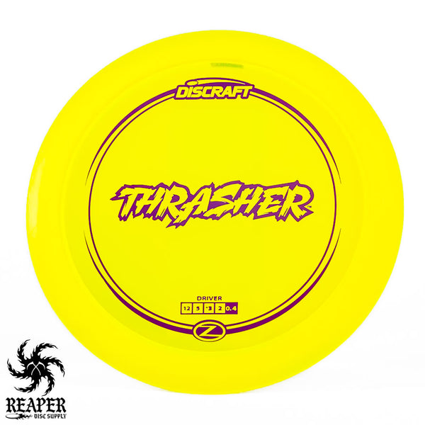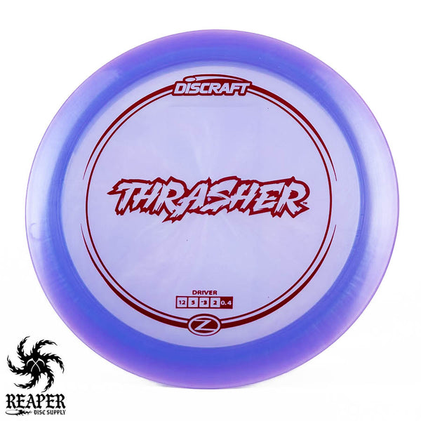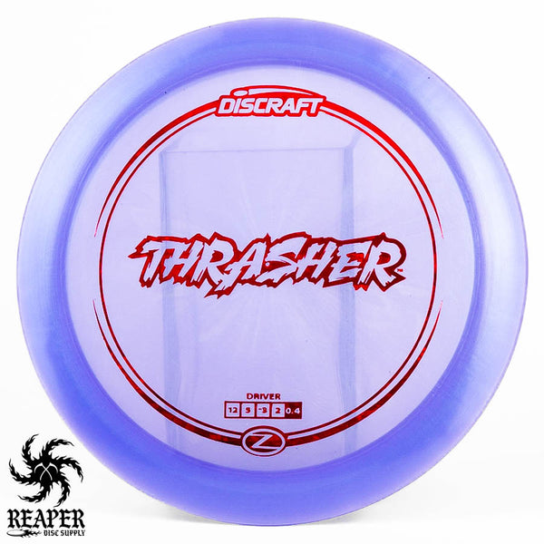 The Discraft Thrasher is a stable to understable distance driver that is extremely forgiving and great for all players who have decent arm speed. With lots of turn and fade, the Z Thrasher is perfect for long S-shaped flex lines on wide-open fairways.