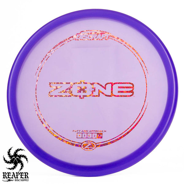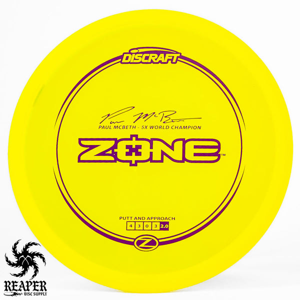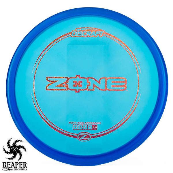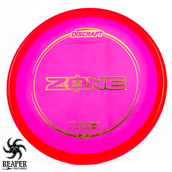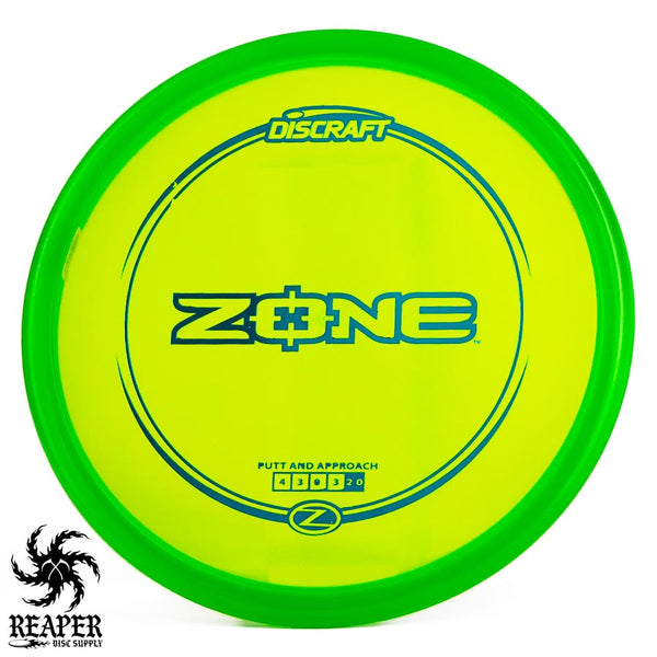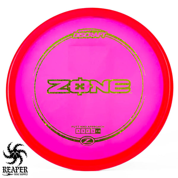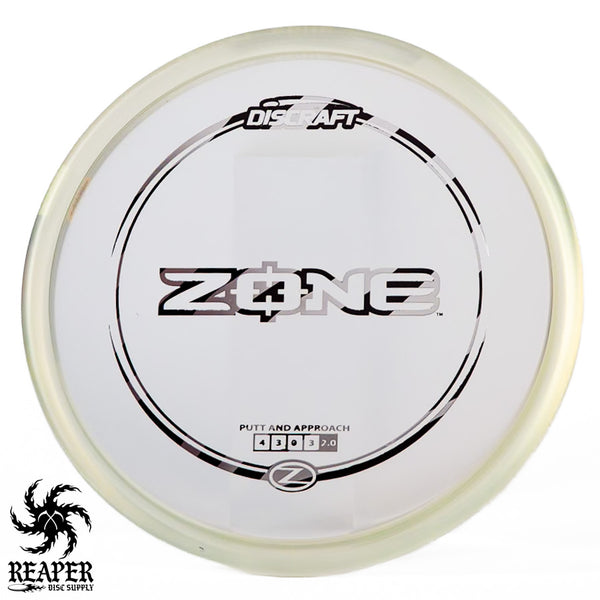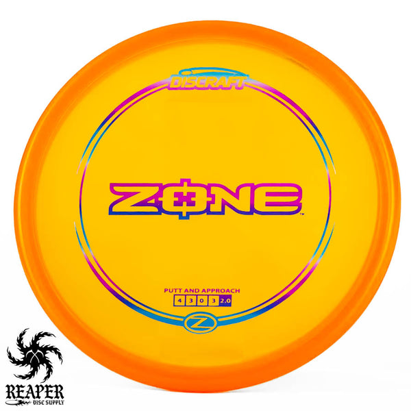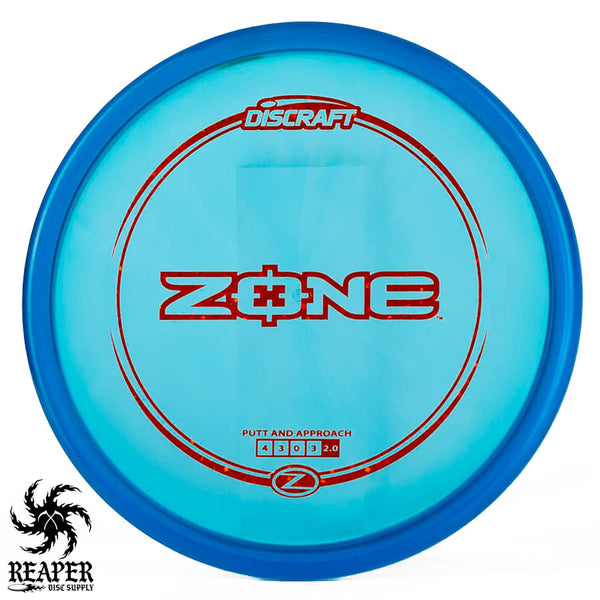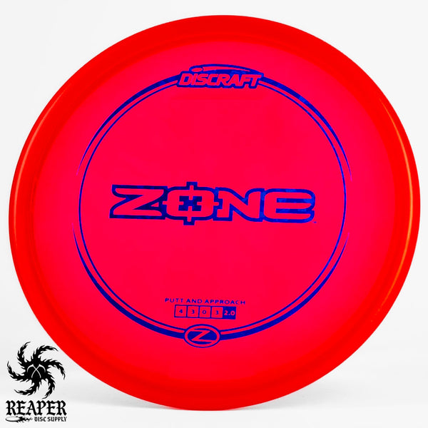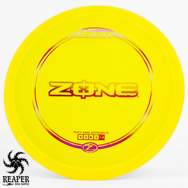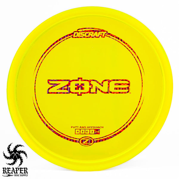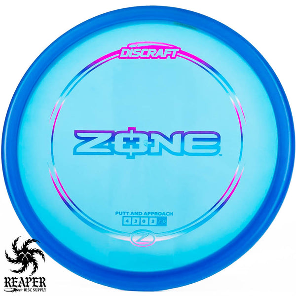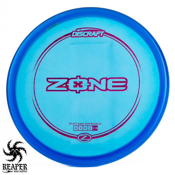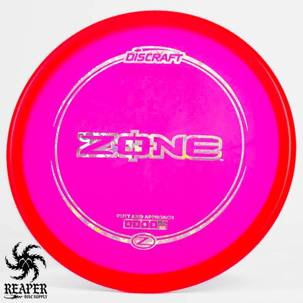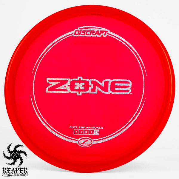 The Discraft Z Zone is tried and true putt & approach disc that is perfect for upshots and made with destruction-proof plastic. The Z Zone is an overstable approach disc that you will find in almost every Discraft-sponsored players bag. It is extremely reliable for any weather conditions and very comfortable to throw for backhand or forehand shots. If you need a short driving disc that you can rip as hard as you want or a touchy upshot disc that won't blow away in the wind - the Discraft Z-Line Zone is your new go-to!