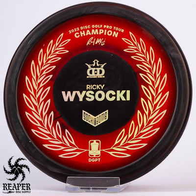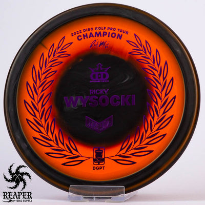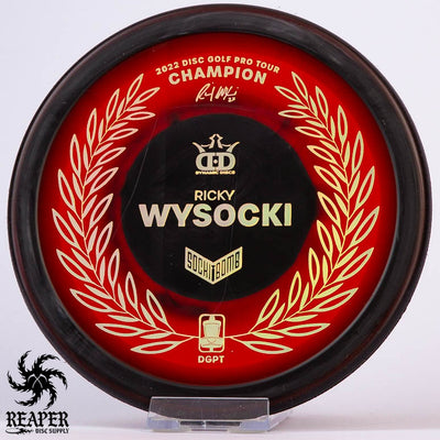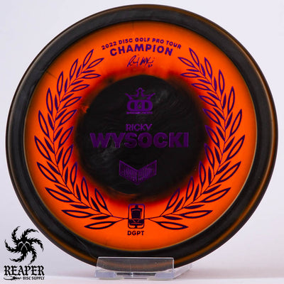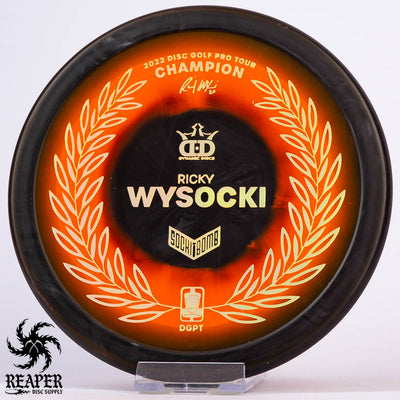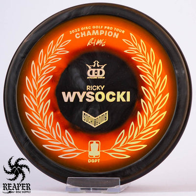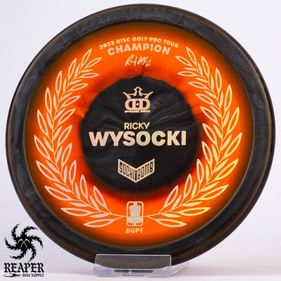 Celebrate Ricky Wysocki's 2021 DGPT Win with these Dynamic Discs Classic Supreme Raptor Eye Sockibomb Slammers! The slammer is a supremely beefy approach disc that you can consistently rely on for a predictable flight. Classic Supreme plastic, while comfortable and grippy, does show wear easily so please check the photos carefully and be aware of this when ordering. Limit 2 per household.