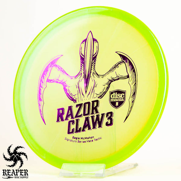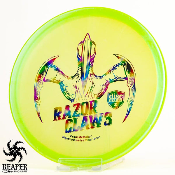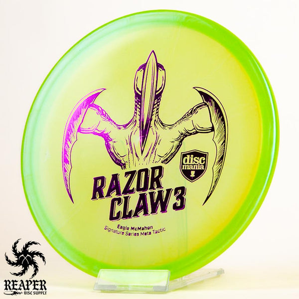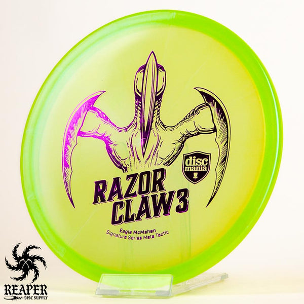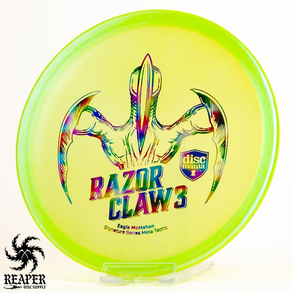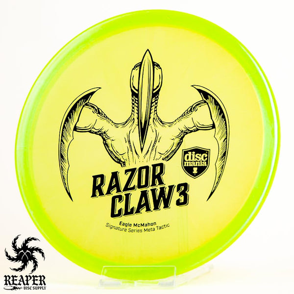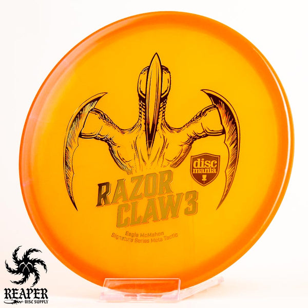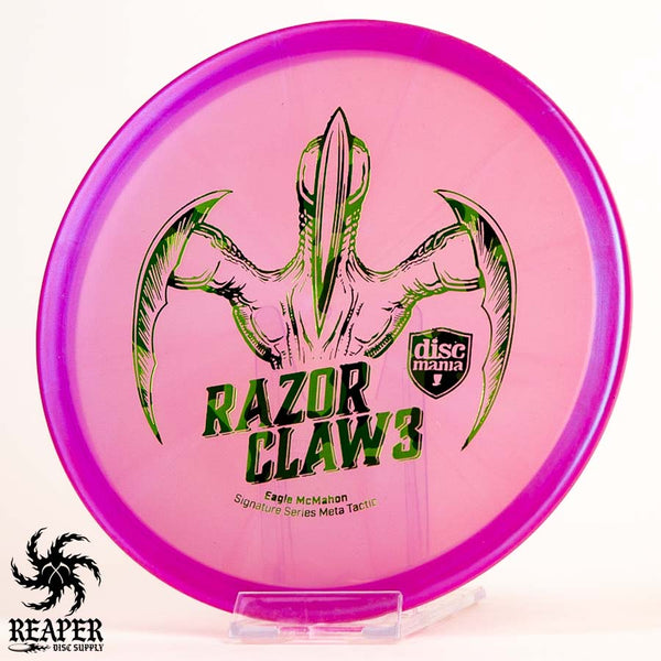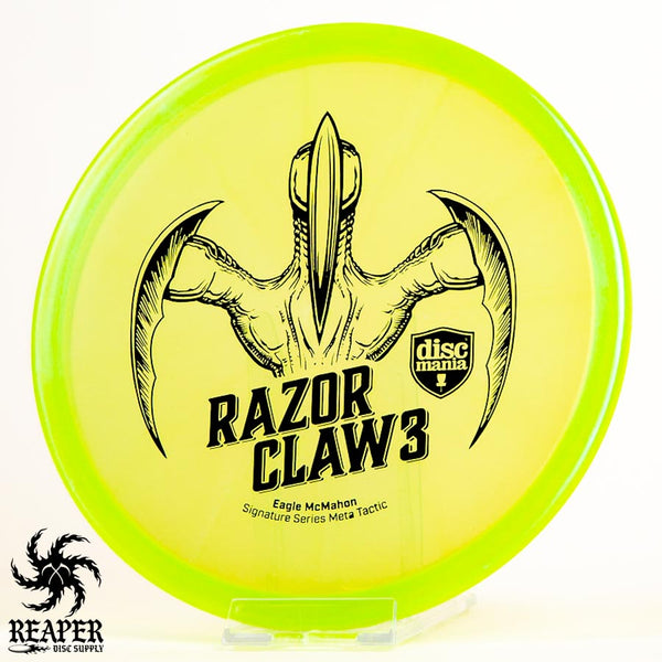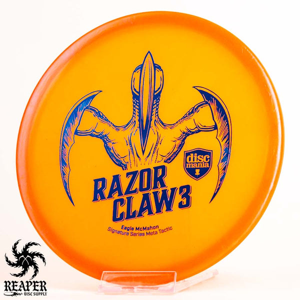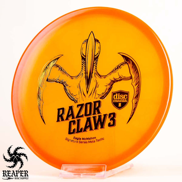 Discmania's Eagle McMahon Razor Claw 3 Meta Tactic features a fierce tri-claw stamp and is made with premium, ultra-durable plastic. If you are looking for an overstable approach disc with minimal glide that will sit under the basket then this is your disc.