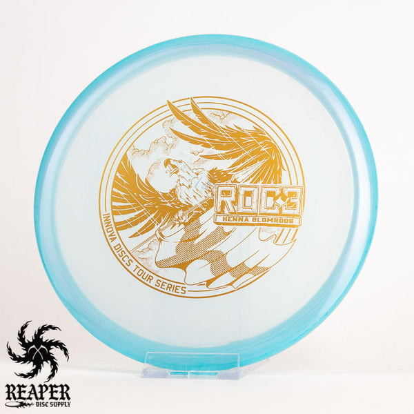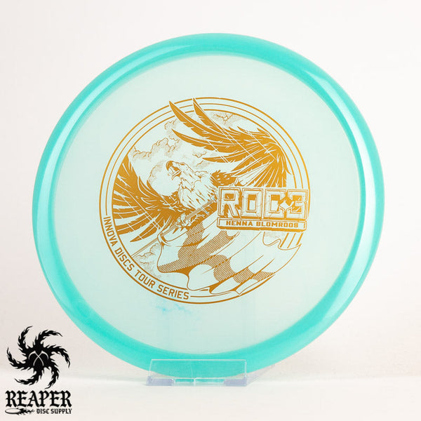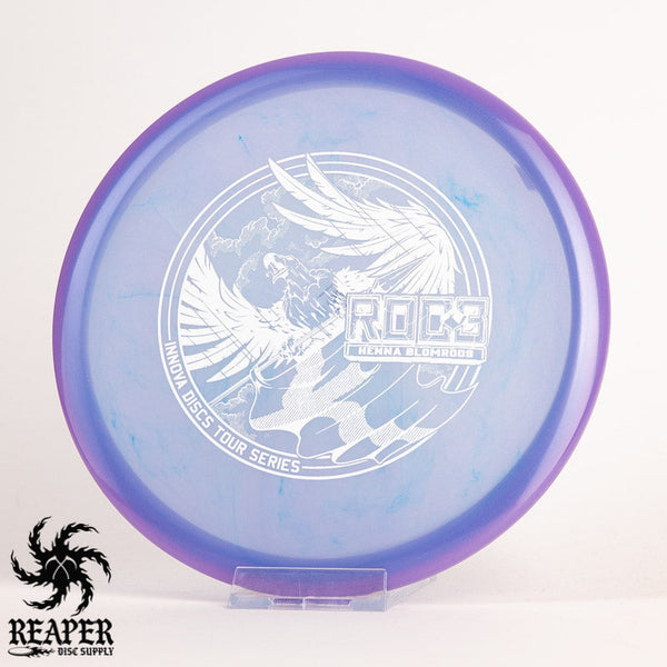 The Innova Henna Blomroos Tour Series Champion Glow Roc3 is the perfect overstable midrange for your next night round. This run of Champion Glow plastic comes in beautiful colors and features an aggressive limited edition bird stamp.