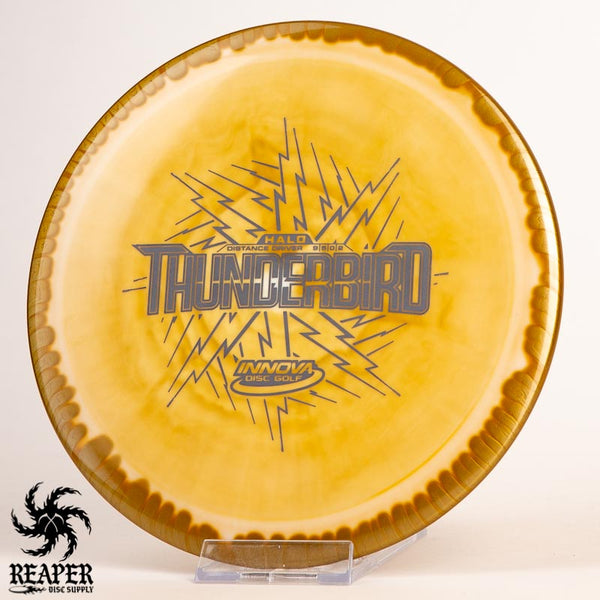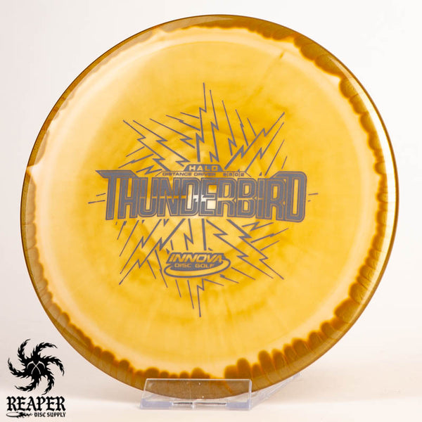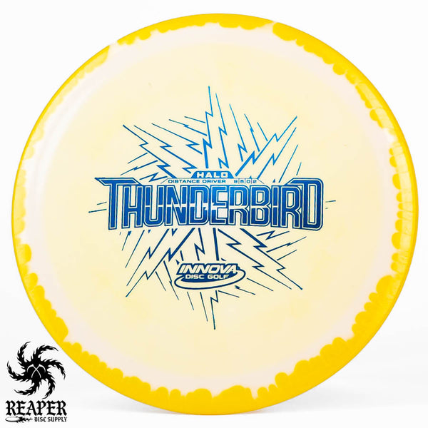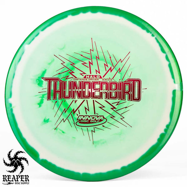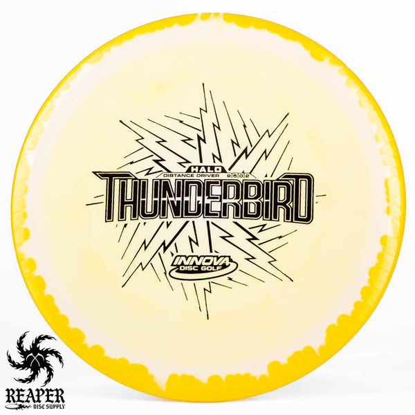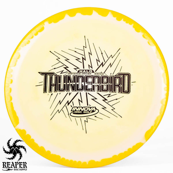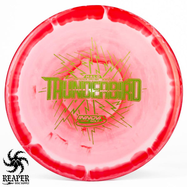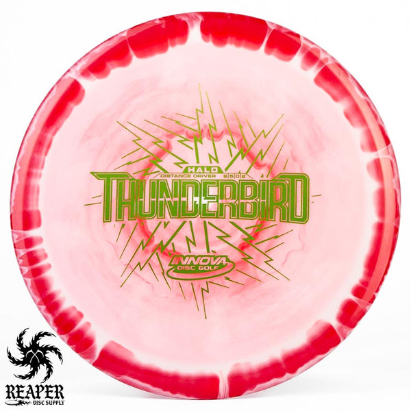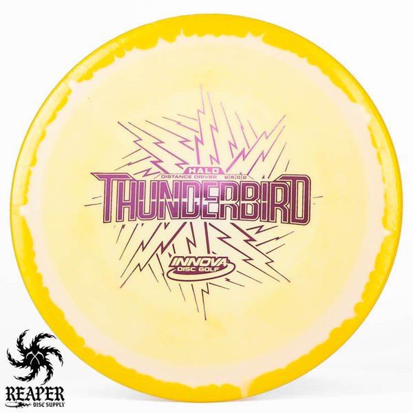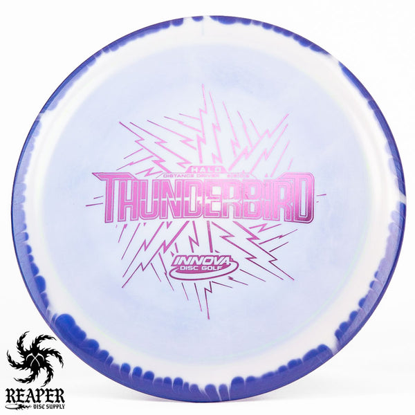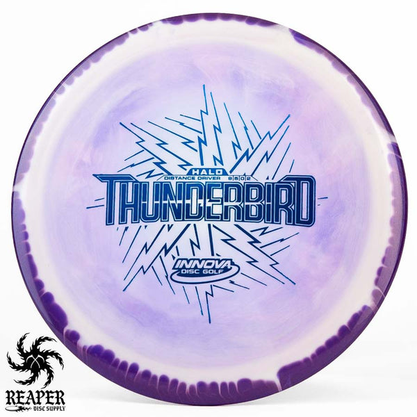 The Halo Thunderbird by Innova is an overstable disc golf driver with premium Star plastic and an awesome stamp! These Halo Thunderbirds are perfect for backhand and forehand drives that require a straight shot with moderate fade.