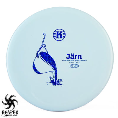The K3 Jarn by Kastaplast is a super grippy and relatively stiff approach disc that will grab the ground, chains or anything it touches. K3-line plastic is a base putting plastic that prioritizes comfortable grip over durability. If you are looking for a reliable approach disc that gives you a ton of control, the Kastaplast K3 Jarn is an incredible option!