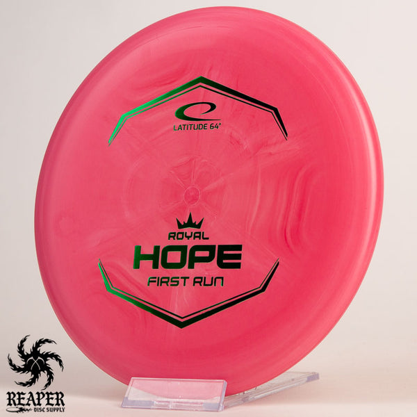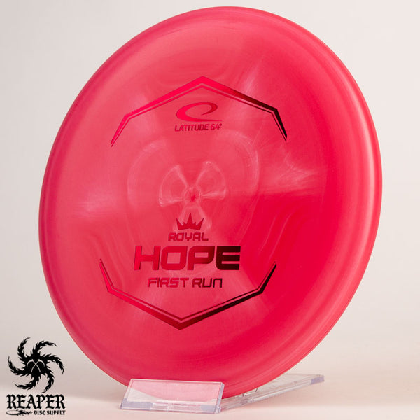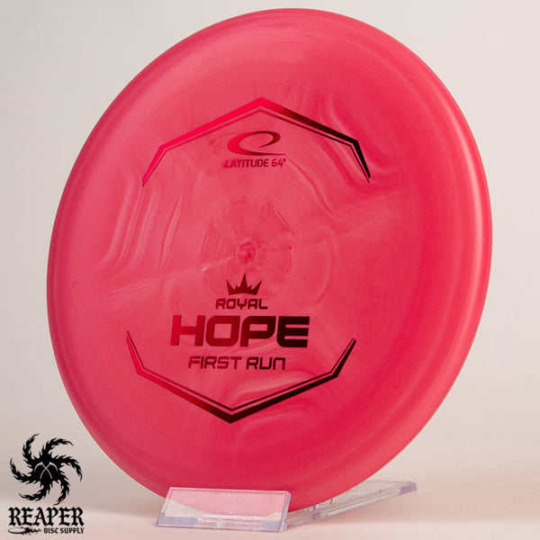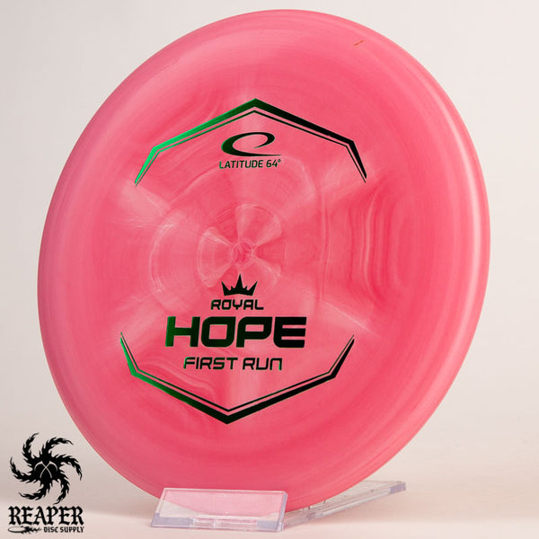 The Latitude 64 Royal Sense Hope is a medium-rimmed, stable, and beadless disc golf putter.