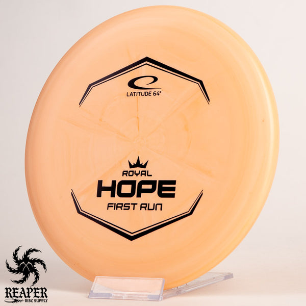 If you aren't a fan of the deep rimmed Latitude 64 Dagger but still want a similar flight; the Royal Sense Hope may just be what you're looking for. This putter provides a straight and stable flight with a slight fade at the very end. Most players will be able to throw this disc on any line and get it to hold. A wonderful versatile disc for any skill level of player!