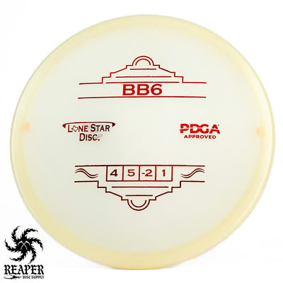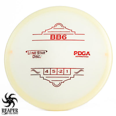 The Lone Star Discs Glow BB6 combines the understable finesse of the original BB6 midrange with the added benefit of glow-in-the-dark plastic. This version maintains the disc's signature glide and gentle turning flight while providing visibility for those late hours on the course.