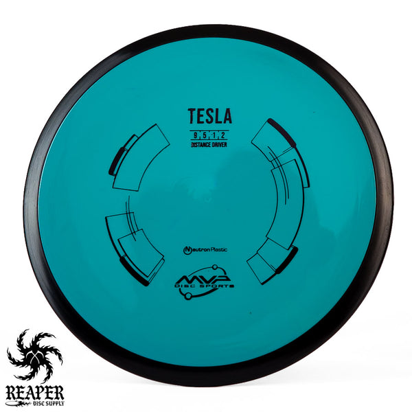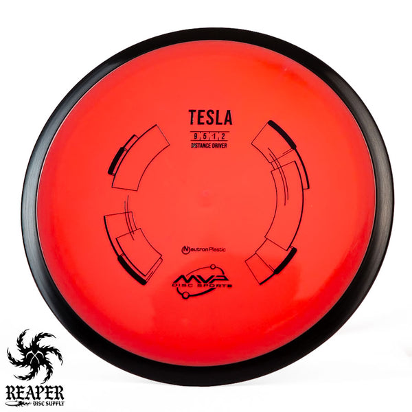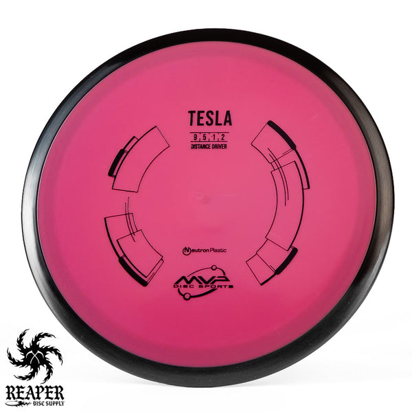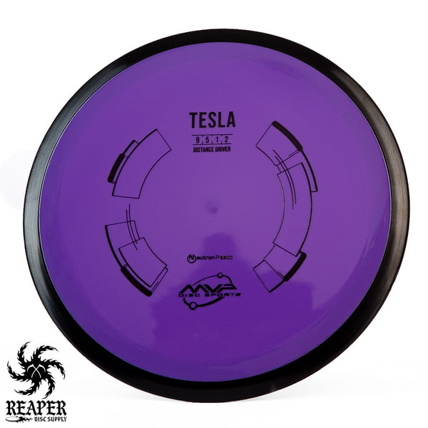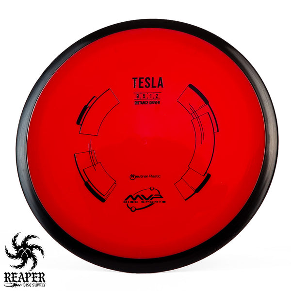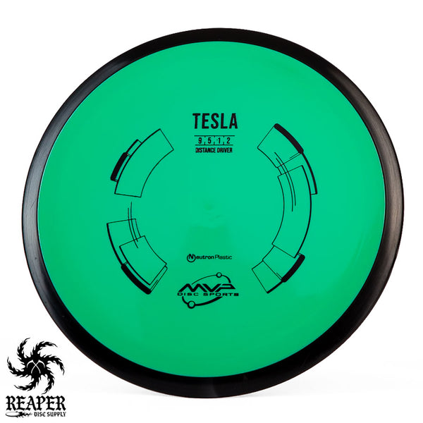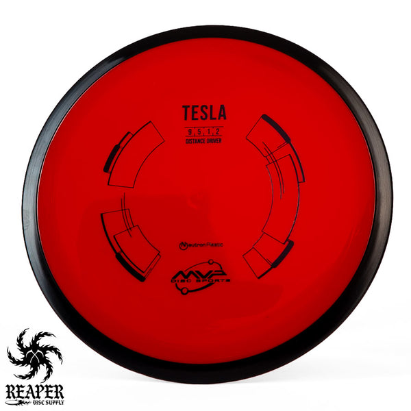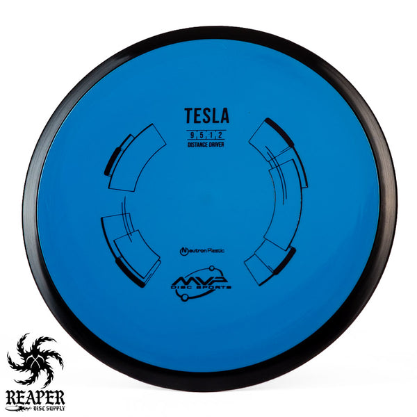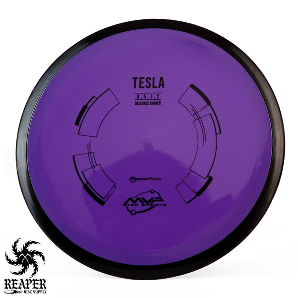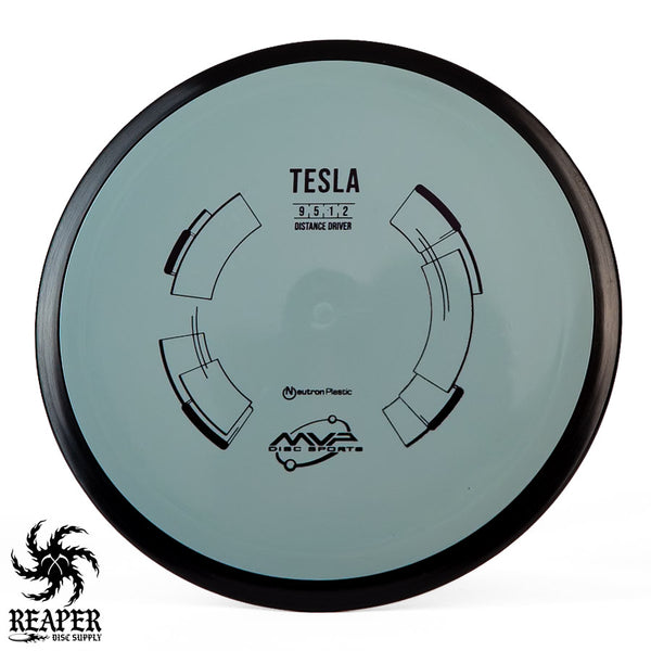 The MVP Neutron Tesla is a stable disc golf driver made with premium grippy plastic. Neutron plastic not only is extremely durable; it also feels great in the hand.