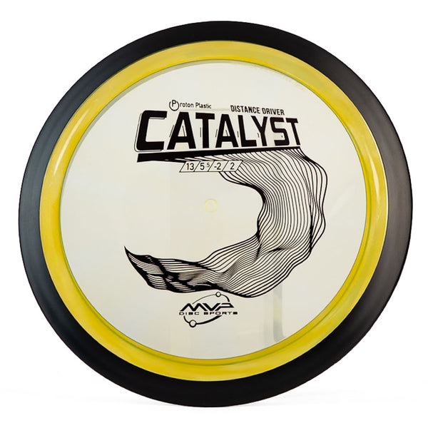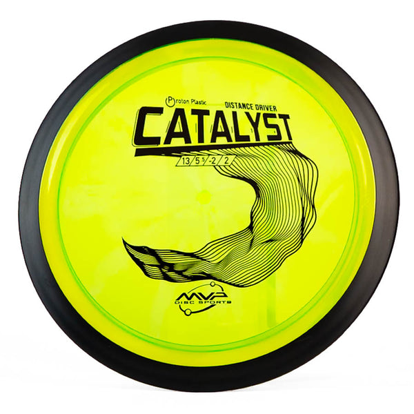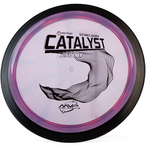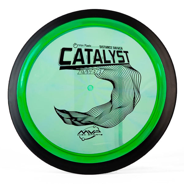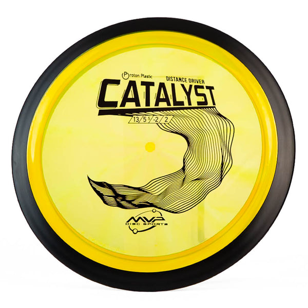 The MVP Proton Catalyst is a stable to slightly understable distance driver designed for max distance. MVP's Proton plastic is not overly grippy and it's slightly flexible. It is also very durable and tends to be a little more glidey than in other plastics.