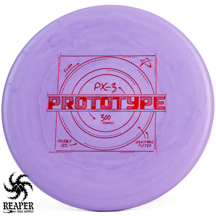 These Prototype Prodigy PX-3 putters come in grippy 300 plastic and have a large prototype exclusive stamp in a variety of colors.