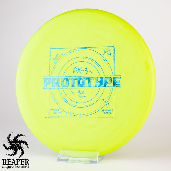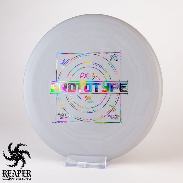 These Prototype Prodigy PX-3 putters come in grippy 300 plastic and have a large prototype exclusive stamp in a variety of colors.