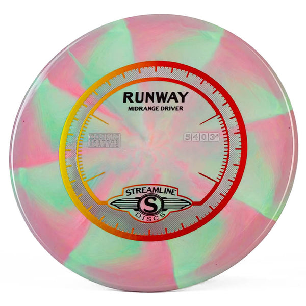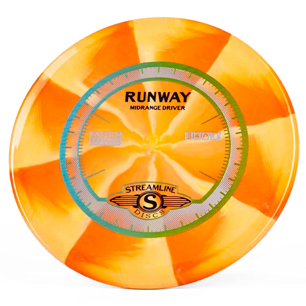 Looking for a versatile midrange disc that can handle the most extreme weather conditions? Look no further than the Streamline Runway. This overstable midrange is designed for predictability on the windiest of days. Whether you're throwing into a headwind or need a mid that will hold a hyzer line without turning over at all, the Runway is an ideal choice. If you're looking for a midrange that put the wind in its place, the Cosmic Neutron Runway is the disc for you.