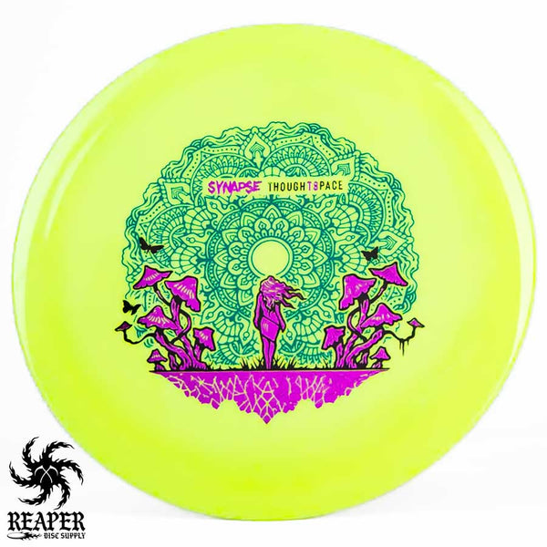 The Thought Space Athletics Aura Synapse is an overstable max distance driver made with premium-grade plastic. Aura plastic is the perfect combination of comfort and durability. It offers great grip, a clean release, and can take a beating.